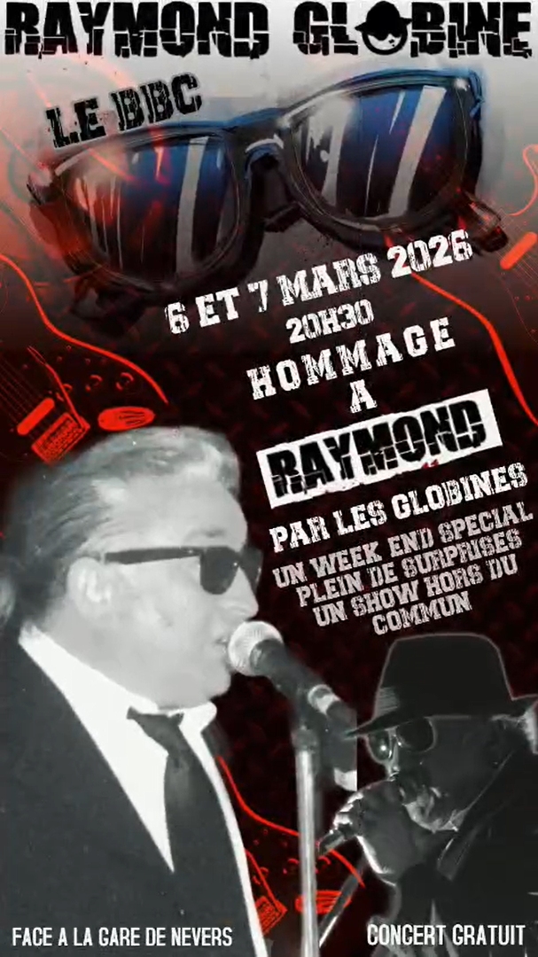 Concert hommage à Raymond Globine par les anciens membres du groupe les vendredi 6 et samedi 7 mars 2026 à 20h30 au BBC (face à la gare de Nevers).